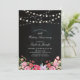 Celebre seu dia especial com este convite personalizado de aniversário de casamento! Este design apresenta belas flores e luzes de corda em um fundo rústico de quadro negro. Você pode personalizar todo o texto e adicionar sua foto no verso. Mais designs disponíveis na minha loja BaraBomDesign.