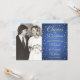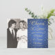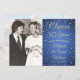 Convide familiares e amigos para uma comemoração elegante de aniversário com convites de festas de 2 fotos azuis e ouro personalizados. O texto "Anima 50 Anos" é simples de personalizar para qualquer ano ou tipo de evento, e as fotos são fáceis de substituir por suas. (DICA DE IMAGEM: Uma maneira fácil de centralizar uma foto exatamente como você deseja é recortá-la antes de carregá-la no site do Zazzle.) A design apresenta pontos de confete da gliteria moderna em um fundo metálico esfregado, caligrafia com script de na moda, tipografia clássica de arte de vintage e duas fotos de sua escolha. Observe que o ouro é impresso a cor, não a folha metálica. Feliz Aniversário e aplausos ao casal na sua celebração do marco!