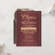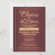 Convide familiares e amigos para uma comemoração elegante de aniversário com burgundy e convites de festas de ouro personalizados. Toda a redação desta modelo (incluindo "Saúde a 40 Anos") é criada para um aniversário de 40 anos de casamento rubi, mas é simples de personalizar para qualquer ano ou tipo de evento. O design apresenta uma simples fronteira moderna sobre um fundo ombre vermelho escuro, caligrafia com script de na moda, e tipografia clássica de arte de vintage. Observe que o ouro é impresso a cor, não a folha metálica. Feliz Aniversário e aplausos ao casal na sua celebração do marco!