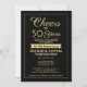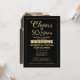 Convide familiares e amigos para uma comemoração elegante de aniversário com convites de festas personalizados de preto e ouro. Toda a redação desta modelo (incluindo "Saúde até 50 Anos") é estabelecida para um 50º aniversário de casamento, mas é simples de personalizar para qualquer ano ou tipo de evento. O design apresenta uma simples fronteira moderna, a caligrafia com na moda e a tipografia clássica com vintage art deco. Observe que o ouro é impresso a cor, não a folha metálica. Feliz Aniversário e aplausos ao casal na sua celebração do marco!