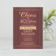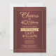 Convide a família e os amigos para uma elegante celebração de aniversário com burgundy e convites de festas de ouro personalizados. Toda a redação desta modelo (incluindo "Saúde a 40 Anos") é criada para um aniversário de 40 anos, mas é simples de personalizar para qualquer ano ou tipo de evento. O design apresenta uma fronteira striped moderna sobre um fundo ombre vermelho escuro, caligrafia com script de na moda, e tipografia clássica com arte de vintage deco. Observe que o ouro é impresso a cor, não a folha metálica. A design neutra do ponto de vista do gênero também é adequada para um homem ou para uma mulher. Feliz Aniversário!