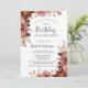 Delicie seus convidados com este convite de aniversário floral requintado. Desenho com arranjos florais nos cantos, uma graciosa combinação de tons bege, rosa poeirento, pêssego, borgonha, Marsala e mel. Parte posterior do cartão em tom bege romântico com arranjo floral nos cantos inferiores. Uso de caligrafia manuscrita e tipografia moderna. Produtos coordenados disponíveis. Parte da nossa coleção de casamento e eventos "Heaven in Rose".