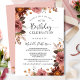 Delicie seus convidados com este convite de aniversário floral requintado. Desenho com arranjos florais nos cantos, uma graciosa combinação de tons bege, rosa poeirento, pêssego, borgonha, Marsala e mel. Parte traseira do cartão em tom bege romântico com arranjo floral no canto inferior. Uso de caligrafia manuscrita e tipografia moderna. Produtos coordenados disponíveis. Parte da nossa coleção de casamento e eventos "Heaven in Rose".