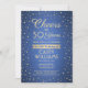 Convide familiares e amigos para uma elegante celebração de aniversário com convites de festas azuis e dourados personalizados. Toda a redação desta modelo (incluindo "Saúde até 50 Anos") é estabelecida para o quinquagésimo aniversário, mas é simples de personalizar para qualquer ano ou tipo de evento. O design apresenta pontos de confete da gliteria moderna em um fundo metálico esfregado, caligrafia com script de na moda, e tipografia clássica com deco de arte de vintage. Observe que o ouro é impresso a cor, não a folha metálica. A design neutra do ponto de vista do gênero também é adequada para um homem ou para uma mulher. Feliz Aniversário!