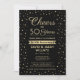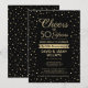 Convide familiares e amigos para uma elegante celebração de aniversário com convites de festa personalizados pretos e dourados. Toda a redação neste modelo (incluindo "Brindemos a 50 Anos") está configurada para um aniversário de casamento de 50 anos, mas é simples de personalizar para qualquer ano ou tipo de evento. O design apresenta pontos de confete cintilantes modernos, caligrafia de roteiro elegante e tipografia art déco vintage clássica. Por favor, note que o dourado é a cor impressa, não a folha metálica. Feliz Aniversário e parabéns ao casal em sua celebração marcante!