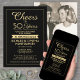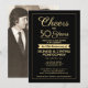 Convide familiares e amigos para uma celebração de aniversário elegante com convites de festa personalizados em preto e dourado. Toda a redação neste modelo (incluindo "Brindemos a 50 Anos") está configurada para um aniversário de casamento de 50 anos, mas é simples de personalizar para qualquer ano ou tipo de evento. O design apresenta uma borda moderna simples, caligrafia de roteiro elegante e tipografia art déco vintage clássica. Por favor, note que o dourado é a cor impressa, não folha metálica. Feliz Aniversário e parabéns ao casal em sua celebração marcante!
