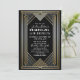 Roaring 20s Anos 1920 Art Deco Gatsby Festa Geométrico Metálico Preto e Dourado Mistério de Assassinato Aniversário Casamento Salve o Convite de Aniversário de Noivado