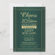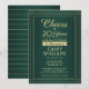 Convide colegas, colegas de trabalho, família e amigos para uma elegante celebração de aposentadoria com convites de festas verdes e dourados personalizados. A formulação modelo do "Cheers to 20 Year" é criada para honrar vinte anos de serviço, mas é simples de personalizar para qualquer número. A design apresenta uma fronteira moderna distribuída sobre um fundo verde ombre, caligrafia com script na moda, e tipografia clássica com arte de vintage. A design neutra do ponto de vista do gênero também é adequada para um homem ou para uma mulher. Saúde, Parabéns e boa aposentadoria!