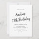 Convites de aniversário de estilo minimalista que podem ser alterados para qualquer idade. Fonte preta sobre um fundo branco nítido.
