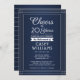 Convide colegas, colegas de trabalho, família e amigos para uma elegante celebração de aposentadoria com convites de festas marinhos azuis e brancos personalizados. A formulação modelo do "Cheers to 20 Year" é criada para honrar vinte anos de serviço, mas é simples de personalizar para qualquer número. O design apresenta uma fronteira striped moderna sobre um fundo ombre azul marinho, caligrafia com script na moda e tipografia clássica com arte de vintage deco. A design neutra do ponto de vista do gênero também é adequada para um homem ou para uma mulher. Saúde, Parabéns e boa aposentadoria!