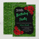 Glitter verde elegante e convites de aniversário de rosa vermelha para mulheres de qualquer idade. A idade pode ser alterada para qualquer idade. O texto pode ser alterado para qualquer coisa para ajustado do seu evento. Fontes, cor da fonte e texto são completamente personalizáveis! A forma e o tipo do papel podem ser personalizados para ajustado do seu orçamento e sabor!