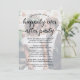 Convide familiares e amigos para uma celebração de casamento simples e elegante apenas para recepção com convites modernos e elegantes de 2 fotos com sobreposição de texto "Festa do Felizes para Sempre". Toda a redação é simples de personalizar para uma cerimônia de renovação de votos, casamento sequencial, 1º aniversário, pós-fuga ou jantar. Personalize para incluir quaisquer detalhes de sua escolha, como data de casamento, código de vestimenta, RSVP, site, etc. (DICA DE COLOCAÇÃO DE IMAGEM: Uma maneira fácil de centralizar uma foto exatamente como você deseja é cortá-la antes de fazer o upload para o site da Zazzle.) O design moderno minimalista preto e branco apresenta duas fotos do casal recém-casado, caligrafia de script manuscrita na moda e tipografia elegante no estilo de máquina de escrever. Quer você tenha fugido, tenha tido um minimoniale ou micro casamento menor, ou a celebração do seu dia especial tenha sido remarcada devido a um adiamento relacionado à pandemia de covid, a festa do felizes