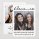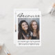 Uma maneira atenciosa de pedir à sua amiga para compartilhar seu dia especial é dar a ela um presente de foto personalizado e elegante que ela possa guardar como lembrança. Este convite de proposta de cartão moderno e sofisticado é uma maneira elegante de dizer "você será minha dama de honra / madrinha?" Todas as imagens e textos são fáceis de personalizar, incluindo a citação na frente que diz "porque você me ajudou a crescer, me manteve firme, levantou meu espírito e iluminou minha vida". (DICA DE COLOCAÇÃO DE IMAGEM: Uma maneira fácil de centralizar uma foto exatamente como você quer é cortá-la antes de fazer o upload para o site da Zazzle.) O design preto e branco apresenta duas fotos de amizade de sua escolha e caligrafia moderna minimalista com estilo de escrita à mão. Este modelo de cartão de proposta moderno é uma maneira única de fazer a pergunta à sua melhor