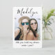 Uma maneira atenciosa de pedir à sua amiga para compartilhar seu dia especial é dar a ela um presente de foto personalizado e elegante que ela possa guardar como lembrança. Este convite de proposta moderno e sofisticado é uma maneira elegante de dizer "você será minha madrinha / dama de honra?". Todas as imagens e textos são fáceis de personalizar, incluindo a mensagem engraçada na frente que diz "você segura meu vestido enquanto faço xixi?". (DICA DE COLOCAÇÃO DE IMAGEM: Uma maneira fácil de centralizar uma foto exatamente como você quer é cortá-la antes de fazer o upload para o site da Zazzle.) O design preto e branco apresenta duas fotos de amizade de sua escolha, caligrafia moderna e tipografia minimalista em estilo manuscrito. Este modelo de cartão de proposta moderno é uma maneira única de fazer a pergunta à sua melhor amiga e começar a celebração do casamento com estilo