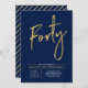 Celebre seu dia especial com este simples convite de festas na moda. Este design apresenta um script de pincel chic "Quarenta" com um layout limpo na combinação de cores azul e ouro do marinho. Há mais designs e suprimentos de festas disponíveis no meu compro, BaraBomDesign.