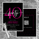 Moderno e chic, este convite de aniversário combina preto clássico e branco com sotaques de rosa brilhante. É um design mínimo é um design simples e divertido para celebrar o aniversário do marco. A parte traseira retém uma área para um código QR para resposta RSVP. Criado pela imprensa simplesmente de farmácia.