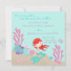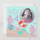 Pequena carta de convite para o quarto aniversário da sereia com criaturas submarinas.