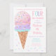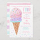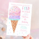 Este convite bonito apresenta meu cone de sorvete de aquarela pintado manualmente com verniz dourado falso.