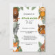 Os animais safari dos meninos temem o 4º convite de festas de aniversário com ilustrações de girafa, leopardo-da-neve, folhas safari, macaco, leão, tigre e zebra. A passagem diz que o nome "é 4 nunca mais selvagem."
