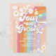 Quatro Ever Groovy Daisy Rainbow Groovy 4º Convite de Aniversário