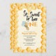 Buzzing com alegria e doçura, este adorável convite de primeiro aniversário "Tão doce de ser um" é a forma perfeita de celebrar o dia especial do seu pequeno mel! Apresentando uma borda macia de alveoleira, uma abelha encantadora com um pote de mel na palavra "UM", e um roteiro elegante e fontes serif, este convite é tão doce quanto pode ser. Com tons amarelos e negros suaves, é uma maneira deliciosa de convidar amigos e familiares para a sua celebração com o tema das abelhas. Facilmente personalizável para ajustado dos detalhes do seu partido. Obrigado por agitar... Se você ama esta design, não se esqueça de gostar!