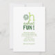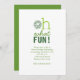 Convite de Natal com a saudação "Que divertido!" em tons festivos de verde. © Humor 4 Cuz