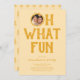 Adicione uma reviravolta contemporânea ao seu festivo partido com os nossos convites de festas de Natal amarelos modernos. Capturando o espírito alegre com o brincalhão "oh o que é divertido" dizendo, estes convites mostram uma design única onde a foto dos hospedeiros substitui o 'o' e uma encantadora armação de rabiscos o melhora ainda mais. Oferecendo uma modelo de texto facilmente editável, a personalização é uma brisa. Entre no mundo das comemorações de Natal chic abraçando seu estilo!