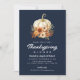 flores rústicas, abóbora e belo texto caligrafia graças ao convite jante.
