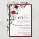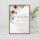 Chá de panela floral moderno, elegante, de queda, com um buquê de flores rosas e cor-de-rosa-burro e verde botânico, bordado num vermelho rico e ensurado. Personalize os detalhes do seu chá de panela em burgundy, acentuado com uma bela caligrafia manual moderna. A parte de trás do cartão é igualmente bonita em um padrão floral arrojado. Entre em contato com o designer para produtos correspondentes. Copyright Anastasia Surridge, todos os direitos reservados.