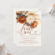 Se apaixonem! Um modelo romântico, elegante, simples, elegante e moderno para os meses de outono - setembro, outubro, novembro. Apresenta uma caligrafia moderna e elegante com o título "apaixonar-se" e um buquê de outono de terracota e creme, bem como erva-pampas e flores de recheio. Luxuoso, mas simples, clássico, mas chique, moderno, mas eterno. Uma escolha adorável para um chá de panela de outono ou outono com cobre, laranja queimada, terracota, bege, vermelho, laranja e outras matizes de outono.