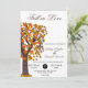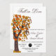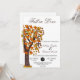 Este elegante convite de casamento outono é perfeito para um casamento moderno no outono. O simples design apresenta uma árvore e folhas de queda com elegante tipografia preta e marrom sobre fundo branco.