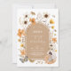 Inspirada pela adorada personagem de conto de fadas "Thumbelina", uma doce fada toma palco central neste convite. Com suas asas delicadas e sua pequena armação, ela captura a essência da inocência e da maravilha que define a infância. A bela exibição floral de flores silvestres boho em tons quentes de queda de laranja, bege e mostarda, ao lado de borboletas graciosas e abelhas ocupadas adiciona um toque de encanto, representando alegria, liberdade e a beleza da natureza.