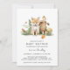Convites de chá de bebê, de lindas matas, com tema de floresta, com ilustração aquosa de uma adorável raposa bebê e folhas de outono. O texto é totalmente editável e pode ser mudado para "baby sprinkle", etc. A design neutra do gênero é perfeita para um bebê ou uma menina.