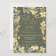 Apaixonar-se pelo chá de panela chic floral de outono, com bonito quadro de flores verde, amarelo, mostarda e khaki, com folhagem e eucalipto. Um livro inspirou o tema do chá de panela do outono com uma tipografia moderna de escrita de coração e um bonito padrão floral no fundo sobre o fundo verde do país retrô