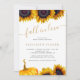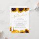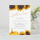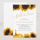 Girassóis e abóbora de ouro amarelos modernos e girassóis de bolo caem no chá de panela com o roteiro de caligrafia de caligrafia com ouro chic. ++++ Adequado para festas de chá de panela de quintais de quintal de quintal no outono rústico.