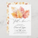 Este convite festa de noivado apresenta lindas folhas de outono, fazer perfeito para uma festa do outono. O convite é simples e elegante, com fundo branco e texto preto. As folhas do outono acrescentam um toque de capricho e diversão, e a design geral é perfeita para celebrar o próximo casamento do casal.
