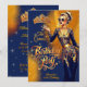 Convite Queen Birthday Gold Orange Navy Blue Dress Party