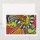 Pintura aquosa contemporânea com estilo gráfico e impressionista de abstrato em cores de queda em negrito. Possui um toque de influência tribal com marcas modernas e matéria não representativa. Moderno, mas a lançar imagens e símbolos antigos.