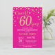 60º Convite de Aniversário com Fundo de Diamantes Glitter Dourado e Rosa Quente. Dourada Confetti. Aniversário Adulto. Homens ou Mulheres Aniversário. Para mais personalização, clique no botão "Personalizar" e use nossa ferramenta de design para modificar este modelo.