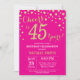 45.º Convite de aniversário com fundo de diamante rosa quente e brilhante Dourado. Dourada Confetti. Aniversário Adulto. Homens ou Mulheres Aniversário. Para mais personalização, clique no botão "Personalizar" e use nossa ferramenta de design para modificar este modelo.