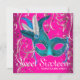Bonito máscara de pena rosa azul-téal e confete rosa rosa rosa rosa rosa-quente e azul-téal doce dezesseis convites de aniversário. Este elegante e divertido mascarada cor-de-rosa-quente e azul-lacrimogêneo é facilmente personalizado para o seu evento, adicionando detalhes do seu evento, estilo de fonte, tamanho e cor da fonte e texto. Observe que todos os adesivos, cartões e designs de convite que você encontrará no Zazzle são gráficos impressos sem joias reais, arcos, levantados, gravados, ou peças ou peças adicionadas.
