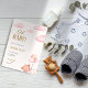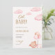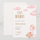 Celebre o dia especial de sua filhinha com este charmoso convite de chá de fraldas com um doce urso de pelúcia segurando balões pastel cor-de-rosa sob nuvens fluffy d'água. O layout minimalista equilibra elegância com beleza — perfeito para um tema gentil e moderno do chá de fraldas. Campos de texto totalmente personalizáveis para torná-lo seu.