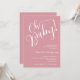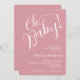 Os convites cor-de-rosa na moda Oh Baby!, chá de fraldas menina, apresentam os detalhes da sua festa em letras brancas chic na frente e no verso, código QR do registro, rifa de fralda e livros para detalhes sobre bebês. Disponível em mais cores e itens CORRESPONDENTES em nossa coleção.