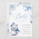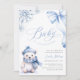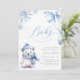 Bem-vindos ao seu pequeno pacote de alegria com este encantador convite para o Chá de fraldas Exterior Frio. Apresentando um urso aquoso com um chapéu azul aconchegante e cachecol, flocos de neve delicados e um elegante arco de fita, esta design é perfeita para uma celebração de inverno para um bebê. Uma escolha suave e na moda para um chá de fraldas sazonal.