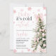 Convite para Chá de fraldas de inverno com arco de coquete rosa-d'água e Natal três.