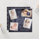 Cartão de saudação quadrado da família de fotos moderna de inverno com um script de caligrafia manual "Baby It's Cold Outside" com letra "Baby It's Cold Outside" e um padrão de flocos de neve no reverso sobre um fundo azul escuro da meia-noite marinho.++++++++ Personalize-o com suas quatro fotos e assinatura!