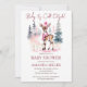 Querido, está frio fora da menina, chá de fraldas de veado de bebê editável convite para modelo instantâneo para o chá de fraldas temático de inverno. Céus bebês lindos vestindo chapéu rosa de inverno e árvores cor-de-rosa com cachecol modelo de neve.