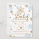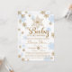 Flocos de neve cor-de-rosa e Dourados rodeiam este belo convite perfeito para um chá de fraldas de inverno dar boas-vindas a um bebê, gêmeos ou múltiplos. Consulte o compro de itens correspondentes!