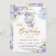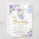 Personalize este convite de aniversário elegante para uma festa de chá com sua própria redação fácil e rapidamente, basta pressionar o botão personalizar para reorganizar e formatar o estilo e a colocação do texto. Este convite apresenta um bule de chá azul bebê bonito, xícaras de chá, lavanda de água bonita, rosas púrpuras lilás e folhagem verde-clara e dourada. Personalize-o para QUALQUER IDADE! Itens correspondentes disponíveis no repositório! (c) O feliz Cat Studio.