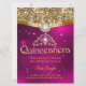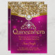 Convite Quinceanera 15 Birthday Pink Glitter Dourado